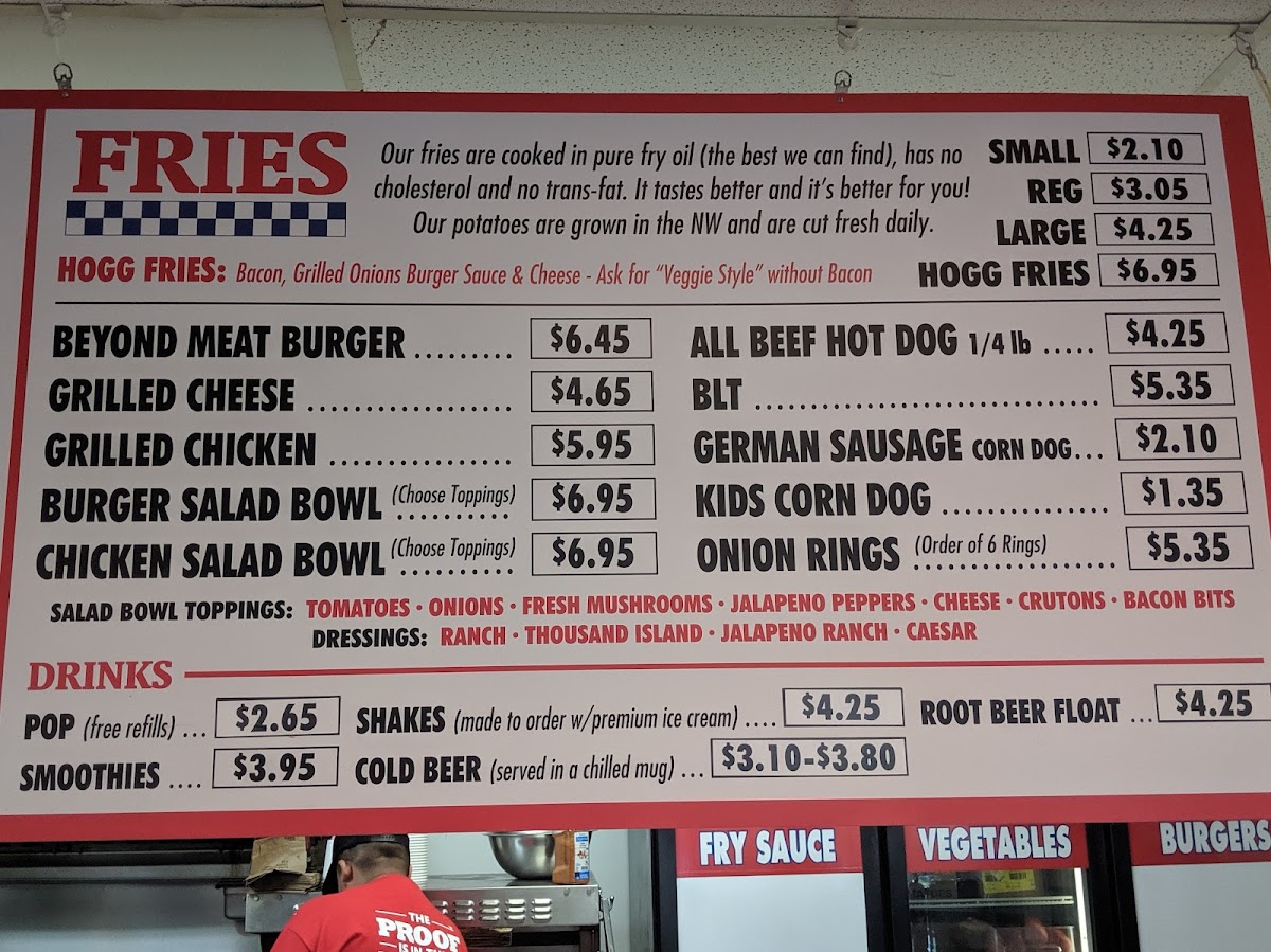 Fries: Don't miss out on our handcut fries, which come in several sizes, from regular to large. The Hogg Fries, with cheddar, bacon bits, and caramelized onions, are a must-try for fry aficionados.